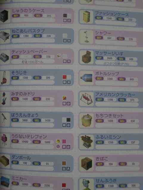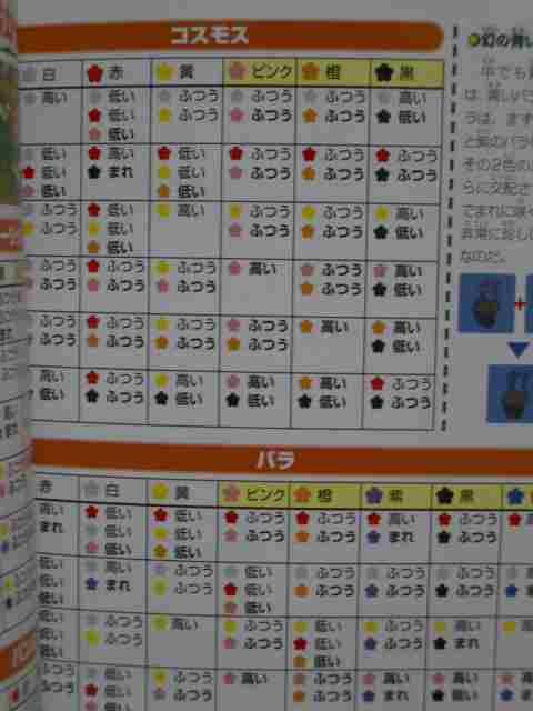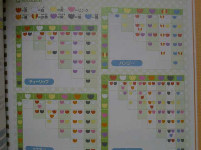 花の交配表・住人、アイテム表が見にくくてダメ。