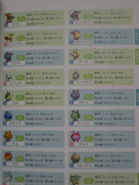 エンタは細かいですが動物ごとに分類。口癖も載ってます。