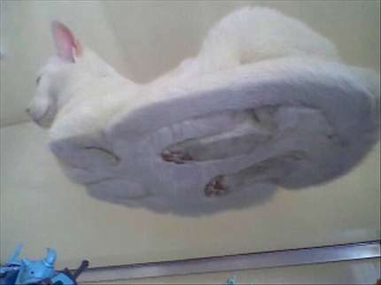 俗に言う猫の“ハコ座り”の裏側でございます(笑)