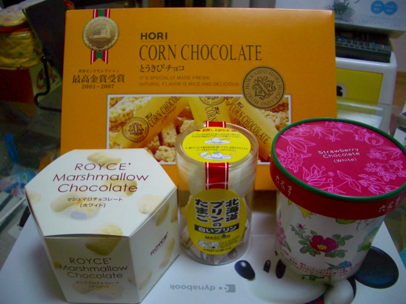 仕方ないので、北海道に行くと必ず買ってくるトウキビチョコ・六花亭のイチゴチョコ